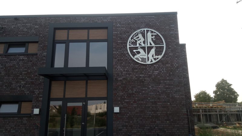 Neben vielen Wochenenden gefüllt von Aufräum- und Reinigungsarbeiten, haben sich die Einsatzkräfte, Mitglieder des Musikzuges und der Alters- und Ehrenabteilung auch um die Inneneinrichtung gekümmert. Eine eigens angefertigte Theke im Versammlungsraum wurde aufgestellt, die Küche und ein dazugehöriger Kühlraum wurden eingebaut, Spinde und Schwerlastregale wurden aufgebaut, Betreuer der Jugendfeuerwehr bauten eine aus eigenen Mitteln finanzierte Teeküche ein. Auch wurden das Emblem und die Spritze am „alten“ Feuerwehrhaus abgebaut und mit Unterstützung des Bauhofes am neuen Gebäude wieder aufgestellt. In dieser Woche wurde auch ein Emblem, angefertigt vom Schmiedeteam Emsbüren, am Gebäude angebracht. Des Weiteren wurden Schreibtische, Stühle und Tische im Gemeindehaus abgebaut und im neuen Feuerwehrgerätehaus wieder aufgebaut.