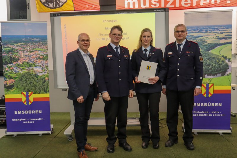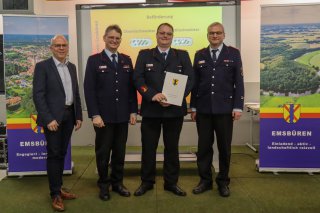 Im Jahr 2022 hatte die Feuerwehr Emsbüren insgesamt 219 Mitglieder, die sich auf die fünf Abteilungen aufteilen. Das Durchschnittsalter lag bei gerade einmal 33,3 Jahren! Insgesamt zu 192 Einsätzen rückte die Einsatzabteilung im Jahr 2022 aus. 96 Einsätze mehr als im vergangenen Jahr. Darunter 82 sturmbedingte Einsätze im Februar. Aber auch 2 Großbrände in Bernte forderten die Kameraden und Kameradinnen aus Emsbüren. Auch der Lehrgangsbetrieb lief wieder im Regelbetrieb. Insgesamt wurden 50 Lehrgänge zur Aus- und Fortbildung besucht. Björn Schüer wurde nach 12-jähriger Tätigkeit als Gemeindejugendfeuerwehrwart verabschiedet.