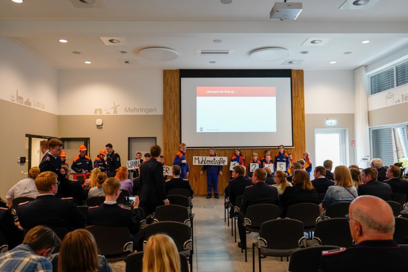 Die Verabschiedung von Björn als Gemeindejugendfeuerwehrwart hatte noch eine weitere Überraschung parat. Die Jugendfeuerwehrkinder hatten eine Vorführung vorbereitet und präsentierten stolz ihr einstudiertes Stück zum bekannten Lied „Feuerwehr“ von Zaches & Zinnober.