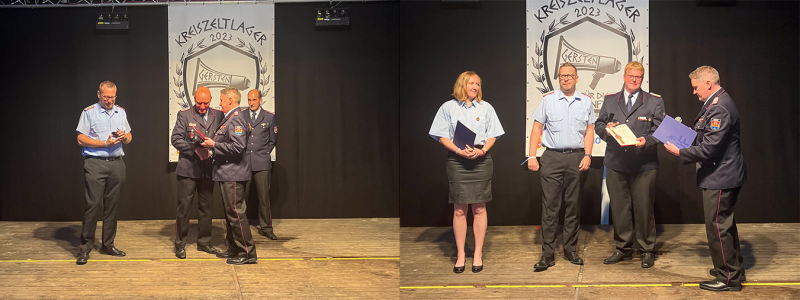 In einem feierlichen Akt wurden zur Eröffnung des Kreisjugendfeuerwehrzeltlagers in Gersten, an dem über 450 Teilnehmer teilnahmen, kürzlich zwei unserer Kameraden, Jürgen Hopmann und Michael Egbring, für ihre herausragenden Verdienste im Bereich der Kinderfeuerwehr geehrt.