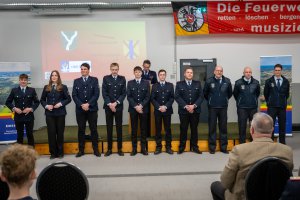 In den Berichten aus der Kinder- und Jugendfeuerwehr wurde auf ein ereignisreiches Jahr 2024 zurückgeblickt. Gemeindejugendfeuerwehrwart Tim Leveling lobte sein Betreuerteam, das mit rund 4.500 Stunden gemeinsamer Ausbildungs- und Veranstaltungszeit nicht nur sein Wissen vertieft, sondern auch jede Menge Spaß gehabt und das anspruchsvolle Jahr 2024 gemeistert hat. Insbesondere die Zusammenarbeit mit anderen Hilfsorganisationen war in diesem Jahr besonders intensiv. Erstmalig trug Anna Leveling nach ihrer Wahl durch den Musikzug als 1. Vorsitzende den Abteilungsbericht vor. Sie betonte insbesondere das gelungene Konzert gemeinsam mit der Matthias-Mertens-Band und Susan Albers im Feuerwehrhaus, das zahlreiche Besucher anzog und begeisterte. Ein besonderer Dank galt der Bohrbrunnengruppe der Alters- und Ehrenabteilung unter dem Vorsitz von Ehrengemeindebrandmeister Werner Kley, die sich um die Überprüfung der Bohrbrunnen und Löschteiche im Gemeindegebiet kümmert. Ebenso hervorzuheben ist die Ausgabe der Mittagsverpflegung während der Kreislehrgänge in Emsbüren, die stets für eine gute Versorgung der Teilnehmer sorgt. Neben den Hauptabteilungen tragen auch weitere Teams wie das Gartenteam, das Presseteam und die IuK-Gruppe wesentlich zum reibungslosen Ablauf und zur Weiterentwicklung der Feuerwehr bei.