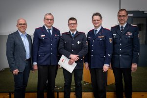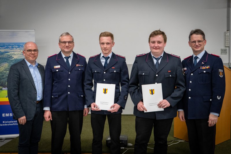 Im Zentrum der Jahresdienstversammlung standen zahlreiche personelle Veränderungen, Beförderungen und Ehrungen, die das Engagement und die Kontinuität innerhalb der Feuerwehr Emsbüren eindrucksvoll unter Beweis stellten. Thomas Fangmeyer wurde von der Versammlung einstimmig zur Wiederwahl als stellvertretender Gemeindebrandmeister vorgeschlagen. Seine 2. Amtszeit endet im September. Die eigentliche Wahl muss durch den Rat der Gemeinde in einer der nächsten Sitzungen erfolgen, da der stv. GemBM aufgrund der Rechtsstellung in ein Ehrenbeamtenverhältnis berufen wird. Nico Venker wurde von den Mitgliedern erneut für 3 Jahre als Beisitzer ins Kommando gewählt. Nach 17 Jahren engagierter Tätigkeit übergab Heinz Hüls sein Amt als Atemschutzgerätewart an Tobias Küpers. Tobias Schomaker und Tobias Egbring wurden als neue Gerätewarte ernannt. Jürgen Fischer und Michael Egbring wurden erneut für drei Jahre in das Amt des Zugführers berufen, sowie Bastian Fahrendorf, Björn Schüer und Tim Fischer zu stv. Gruppenführern. Angesichts zunehmender Anforderungen in der Aus- und Fortbildung – insbesondere im Hinblick auf Dokumentation, Nachweispflichten und Koordination – folgte die Feuerwehr Emsbüren der Empfehlung der Kreisfeuerwehrführung und ernannte Jürgen Fischer zum Gemeindeausbildungsbeauftragten. Jonas Fühner wurde zum neuen Gemeindepressewart bestellt.