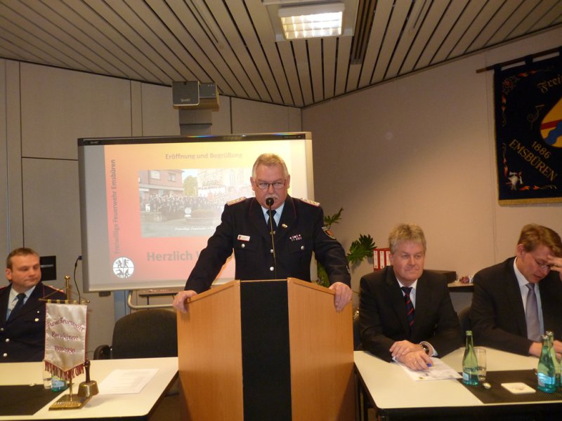 In der Jahresdienstversammlung der Freiwilligen Feuerwehr Emsbüren konnte Gemeindebrandmeister Werner Kley auf ein ereignisreiches Jahr