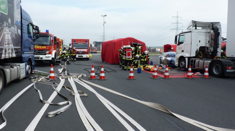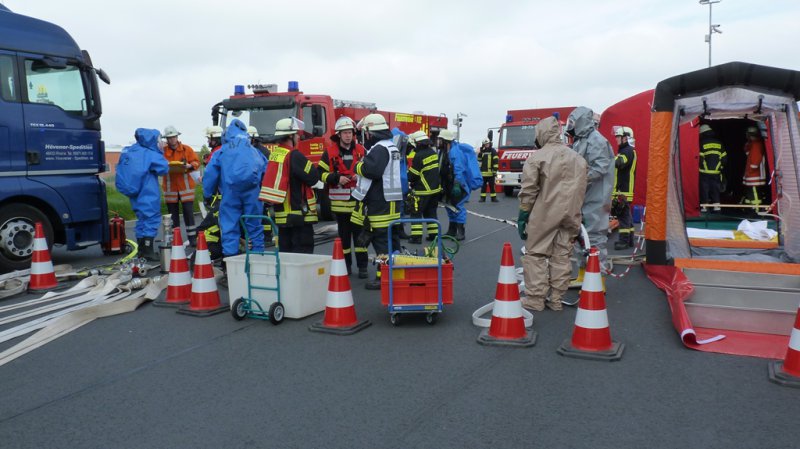 Bei der Firma Boll Logistik im Gewerbegebiet „EmsLandPark“ hat am Samstag, den 6. Mai 2017, eine großangelegte Gefahrgutübung stattgefunden. Neben der örtlich zuständigen Feuerwehr Emsbüren haben auch Einheiten des Gefahrgutzuges Emsland Süd II teilgenommen.