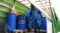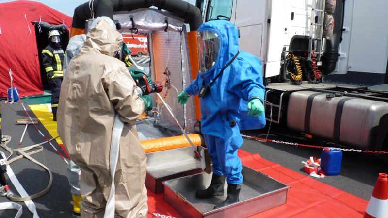 Nach Eintreffen des Gefahrgutzuges wurde im ersten Schritt ein Dekontaminationsplatz aufgebaut. Zeitgleich wurde ein erster Einsatz unter Chemikalienschutzanzügen vorbereitet. Nachdem die Infrastruktur vollständig errichtet war, ging ein erster Trupp unter CSA zu einer Erkundung der Lage vor.