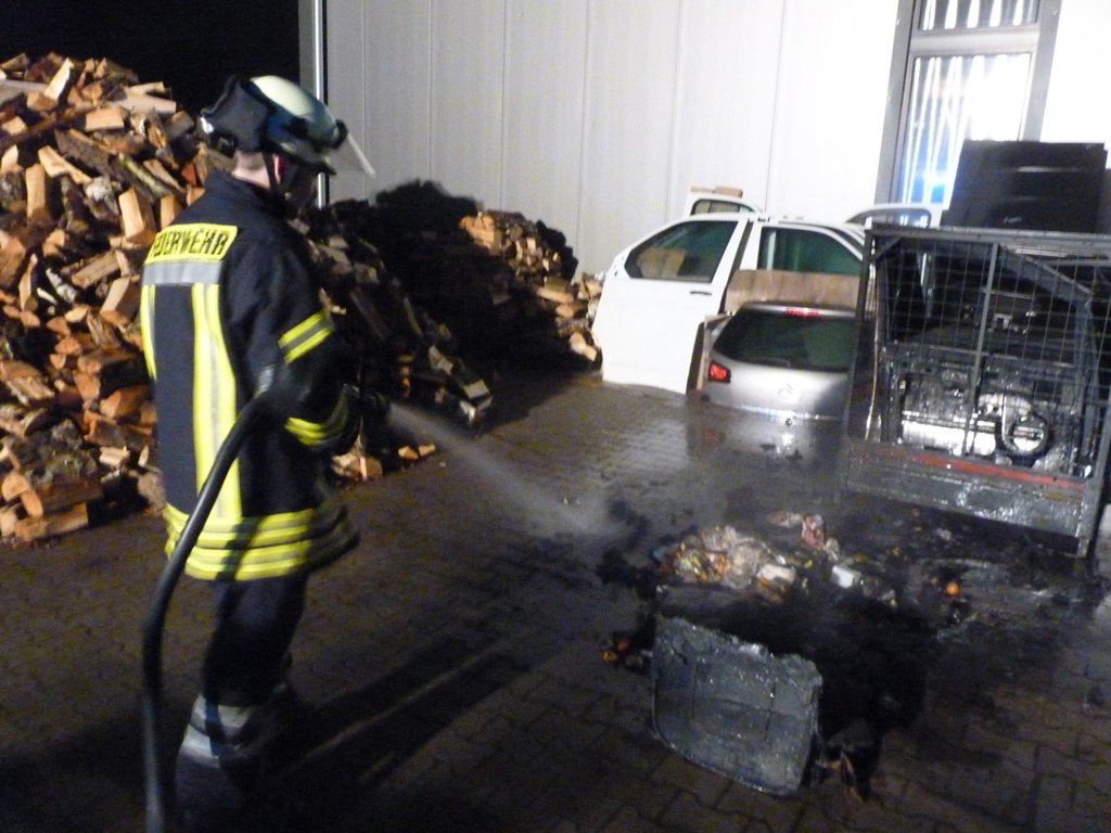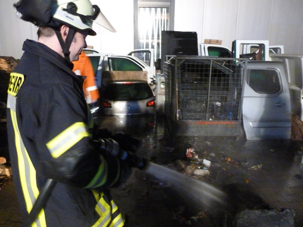 Am späten Dienstagabend wurde eine Alarmgruppe der Feuerwehr Emsbüren zu einem Einsatz in das Industriegebiet Mehringen gerufen. Den ersten Meldungen der Einsatzleitstelle zur Folge seien auf dem Gelände eines dort ansässigen Unternehmens Autoteile in Brand geraten, die sich in unmittelbarer Nähe zum Gebäude befänden. Aufgrund dieser Meldung und der daraus resultierenden Gefahren eines Übergreifens auf den Gebäudekomplex rückte die Feuerwehr zunächst mit 24 Einsatzkräften und 5 Fahrzeugen aus.