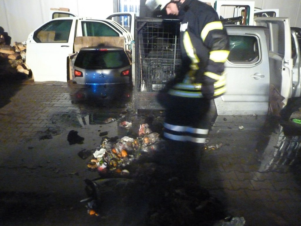 Als die ersten Einsatzkräfte am Brandort eintrafen, konnte Entwarnung gegeben werden, sodass weitere Fahrzeuge, die sich noch auf der Anfahrt befanden, den Einsatz abbrechen konnten. Es brannte lediglich eine Mülltonne auf dem Hof des Unternehmens. Mit einem Schnellangriffsschlauch konnte die Besatzung des HLF 20/16 das Feuer schnell löschen .