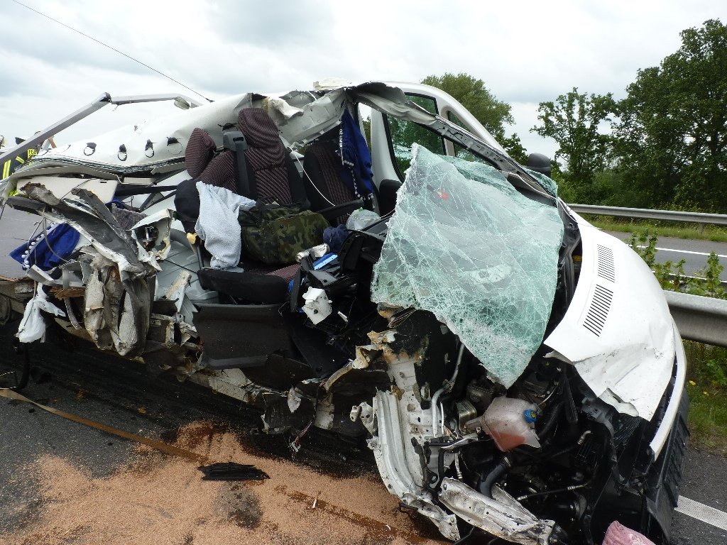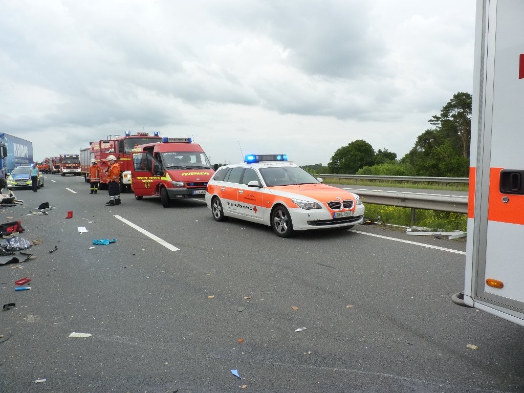 Auf der Autobahn 31 kam es am frühen Dienstagabend zu einem schweren Verkehrsunfall. Ein in Richtung Oberhausen fahrender Kleintransporter fuhr zwischen den Anschlussstellen "Schüttorf-Ost" und "Ochtrup-Nord" aus bislang unbekannten Gründen auf einen auf dem Standstreifen stehenden LKW auf. Durch die Wucht des Aufpralls entstand ein großes Trümmerfeld.