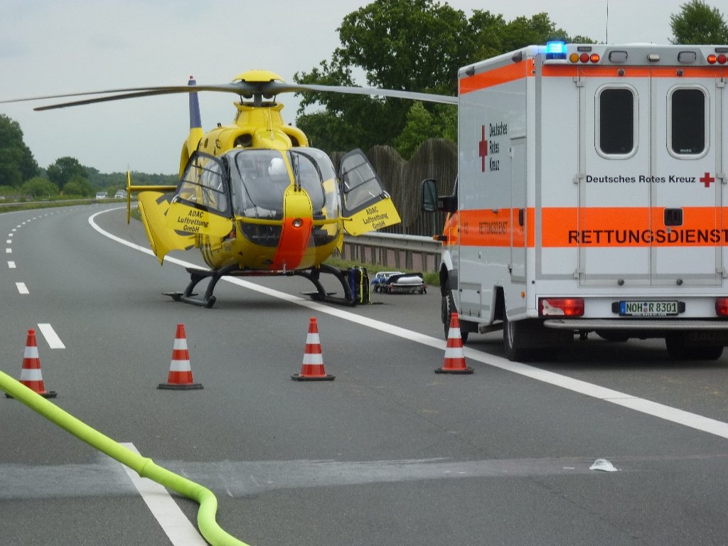 DIe zuerst an der Unfallstelle eintreffende Feuerwehr Schüttorf befreite den eingeklemmten Fahrer des Kleintransporters. Er erlitt bei dem Unfall lebensgefährliche Verletzungen und kam nach einer Erstversorgung durch Rettungsdienst und Notarzt mit dem Rettungshubschrauber Christoph Europa 2 in ein umliegendes Krankenhaus. Weitere Aufgaben der Feuerwehr waren die Absicherung der Unfallstelle, die Aufnahme ausgelaufener Betriebsstoffe und die Sicherstellung des Brandschutzes.