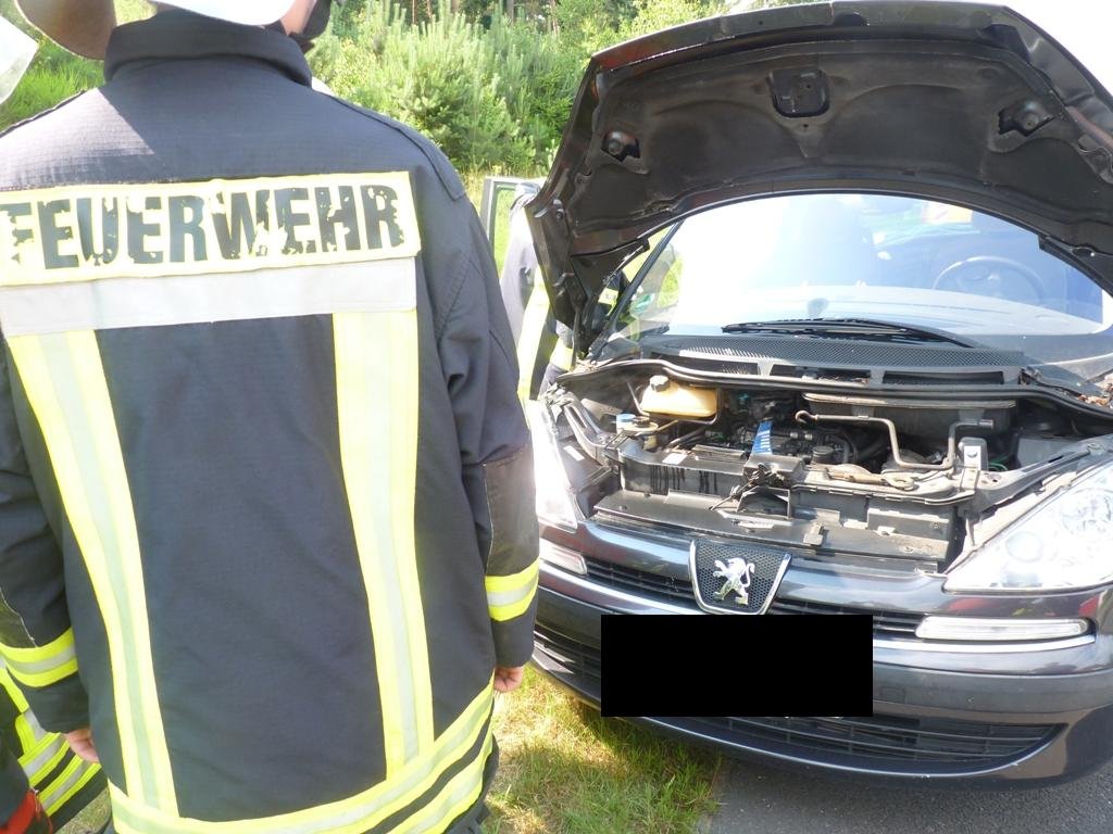 Umgehend rückten 17 Einsatzkräfte in vier Fahrzeugen zur Einsatzstelle aus. Bereits auf der Anfahrt rüstete sich ein Trupp mit schwerem Atemschutz aus. Vor Ort konnte der zuerst an der Einsatzstelle eintreffende Einsatzleitwagen schnell Entwarnung geben. Bei einem Peugoet war während der Fahrt lediglich der Kühlschlauch geplatzt. Der daraus resultierende Wasserdampf sorgte für eine Rauchentwicklung. Ein vorbeifahrender PKW-Fahrer missdeutete den aufsteigenden Wasserdampf als Schadensfeuer im Motorraum und setzte umgehend einen Notruf ab. Zur Kontrolle fuhr das HLF 20/16 die Einsatzstelle an. Das LF 16/12 und das TLF 20/40 konnten ihre Alarmfahrt abbrechen und zum Feuerwehrhaus zurückkehren.