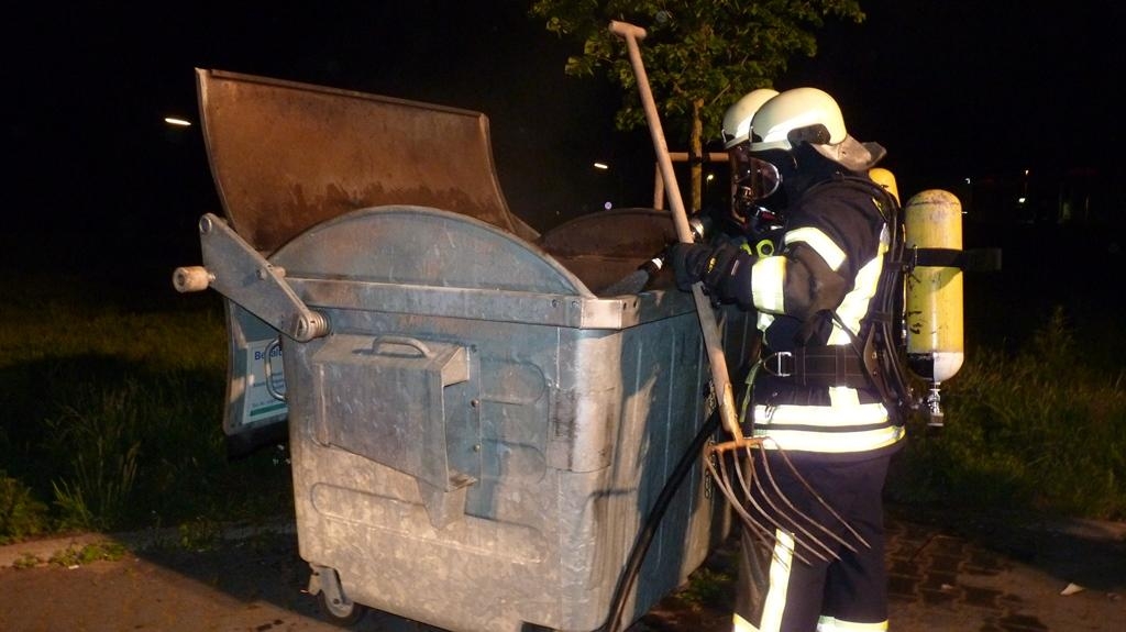 Bei Eintreffen am Einsatzort drang dichter Rauch aus den Container. Mit dem Schnellangriffsschlauch des HLF 20/16 ging ein Trupp unter schwerem Atemschutz zur Brandbekämpfung vor und hatte den Schwelbrand schnell unter Kontrolle. Um Glutnester und Zündquellen zu erreichen, wurde der gesamte Inhalt des Containers mit einer Forke umgeschichtet. Nach umfangreichen Nachlöscharbeiten mit Netzwasser und einer Nachkontrolle mit der Wärmebildkamera konnte die Einsatzstelle der Polizei übergeben werden, die noch vor Ort erste Ermittlungen zur Ursache des Brandes aufnahm.