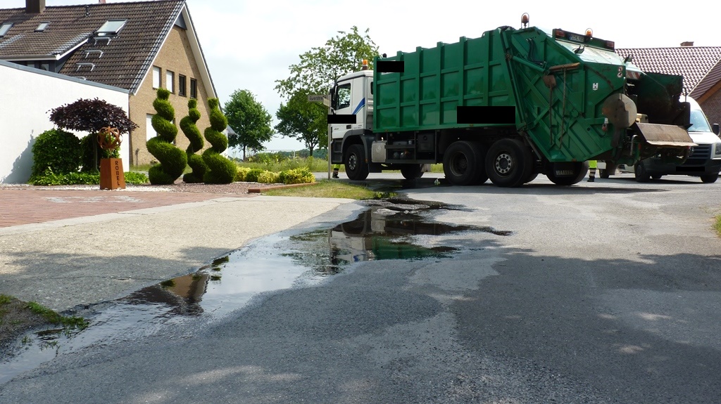 Am Dienstag wurde die Feuerwehr Emsbüren zu einem Einsatz in die Tannenstraße im Ortsteil Leschede gerufen. Bei einem Müllfahrzeug war es zu einem Riss an einer Ölleitung gekommen. Ungehindert lief eine große Menge Öl aus.