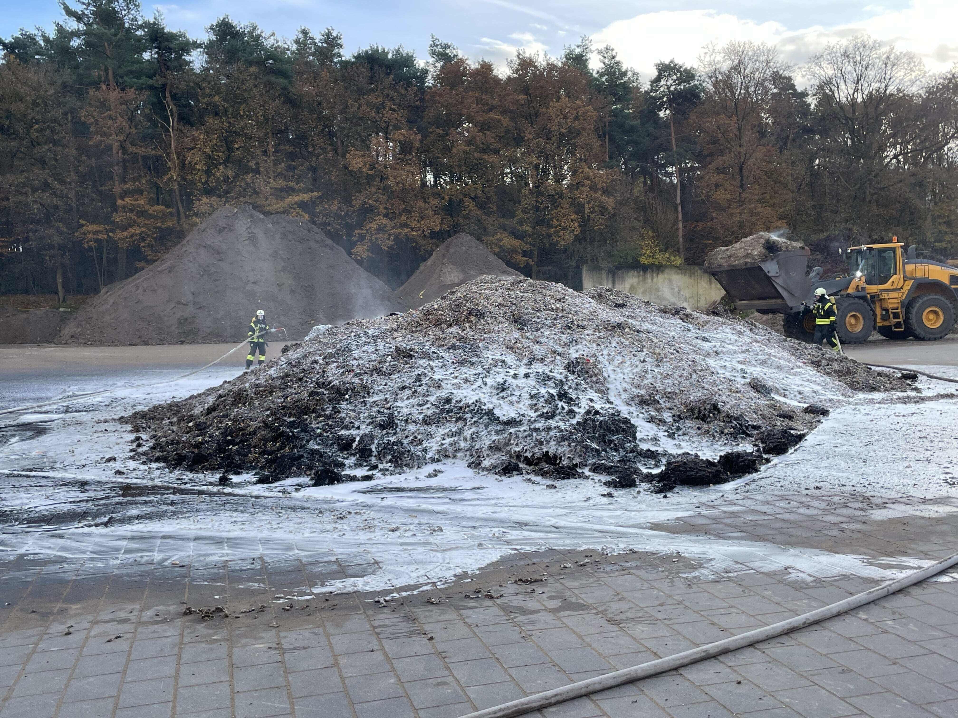 Aufgrund der großen Menge an Brandgut war es erforderlich, dieses mehrfach umzuschichten und erneut abzukühlen, um eine möglichst effiziente Brandbekämpfung sicherzustellen. (DF)