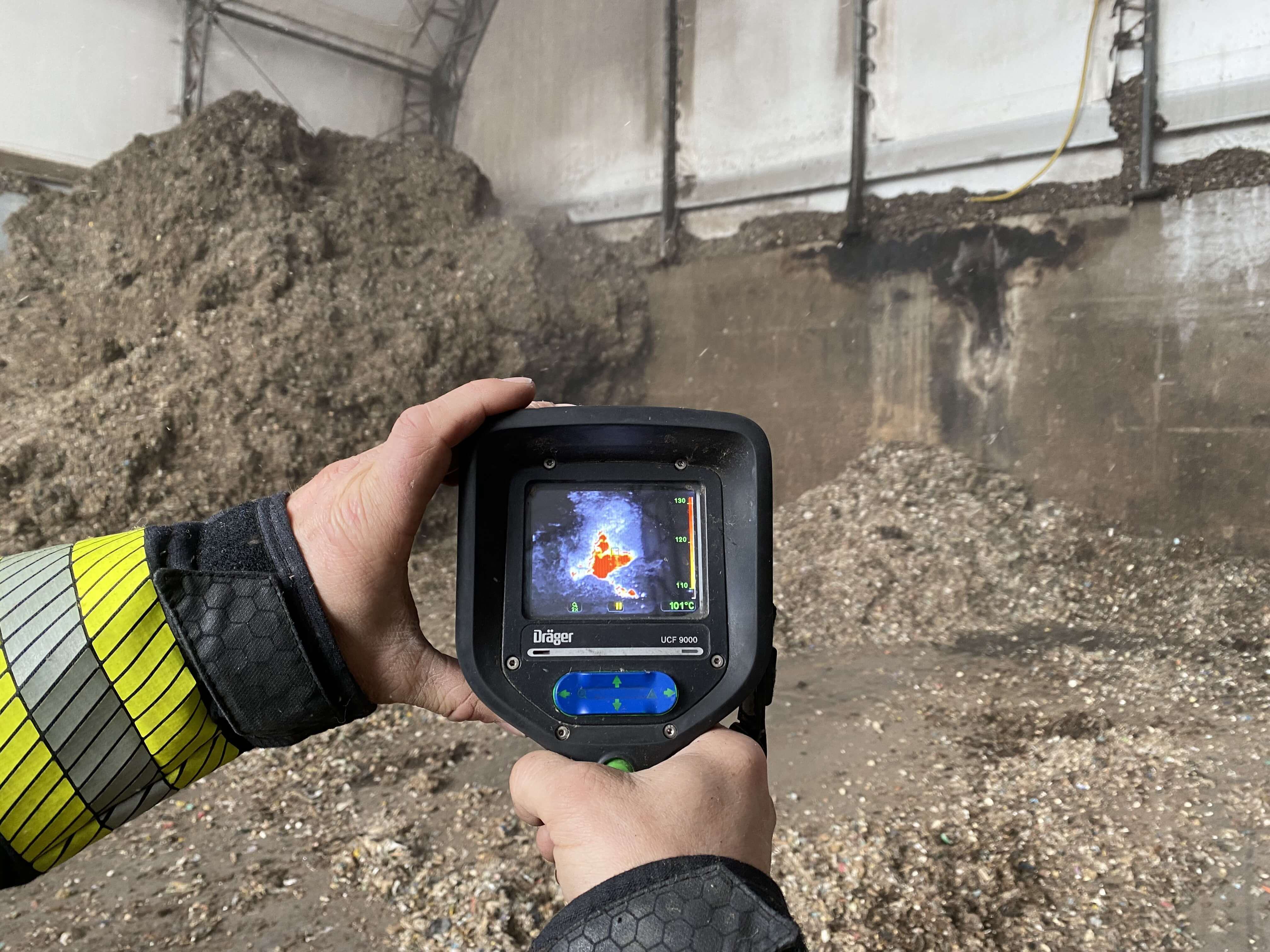 Dieser Vorgang wurde durchgehend unter Beobachtung mit Wärmebildkameras überwacht. Im hinteren Bereich der Halle angekommen, löschten wir das Brandgut mit zwei Angriffstrupps und dem Werfer des TLF 20/40. Das Material wurde beim Abkippen aus der Radladerschaufel abgelöscht und anschließend mit Schaum bedeckt, um ein erneutes Entflammen zu verhindern. Zur Löschwasserversorgung wurden Wasser aus einem nahegelegenen Löschteich sowie aus Hydranten genutzt, um die kontinuierliche Wasserbereitstellung sicherzustellen