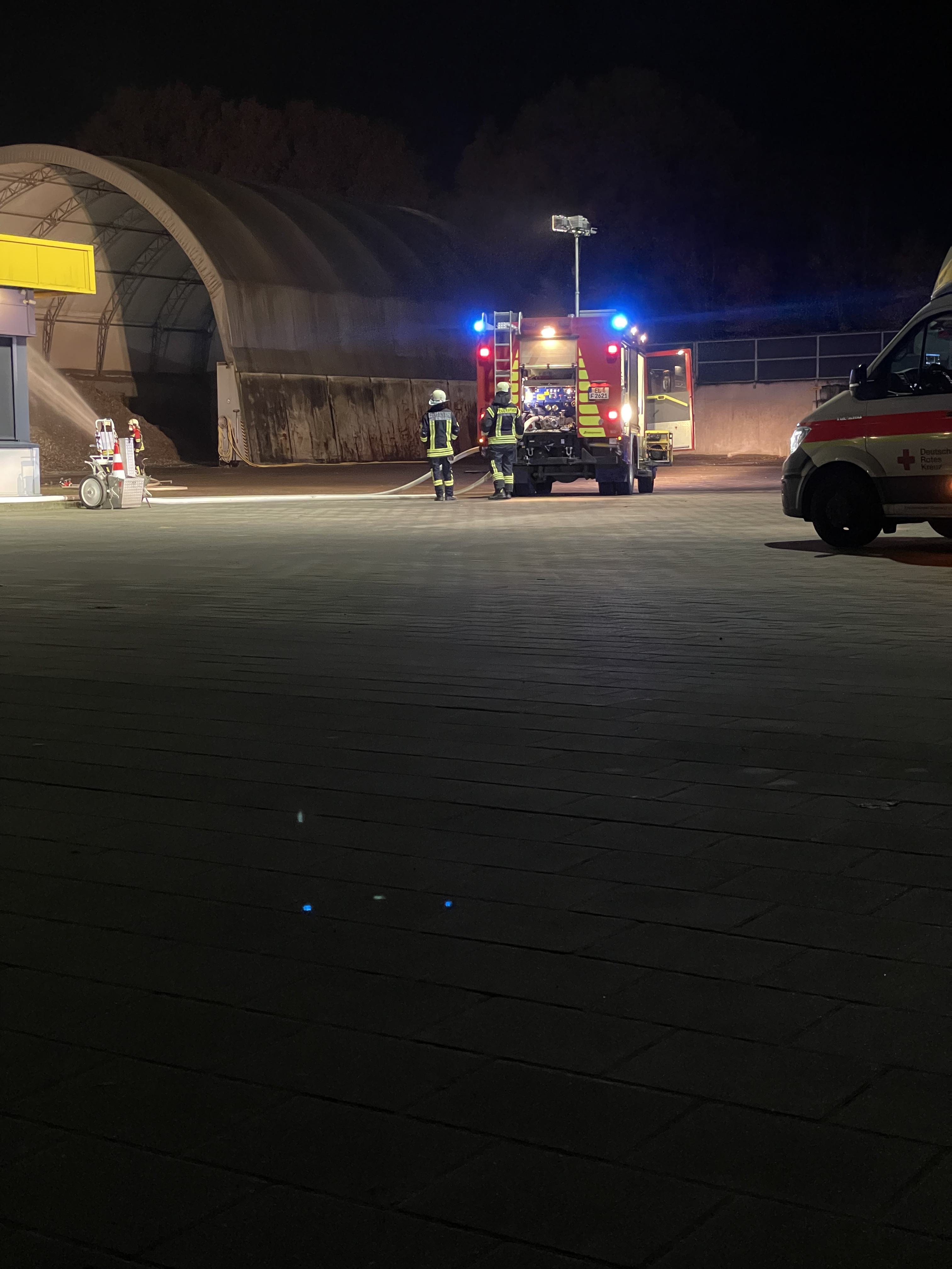 Am 18.11.2024 wurden wir erneut zum Einsatzort des Brandes in der Lagerhalle alarmiert, diesmal mit dem Stichwort F0 Nachschau. Grund für die Alarmierung war die erneute Entzündung von Resthitze im geschredderten Material, das beim vorherigen Einsatz noch nicht vollständig abgekühlt war.