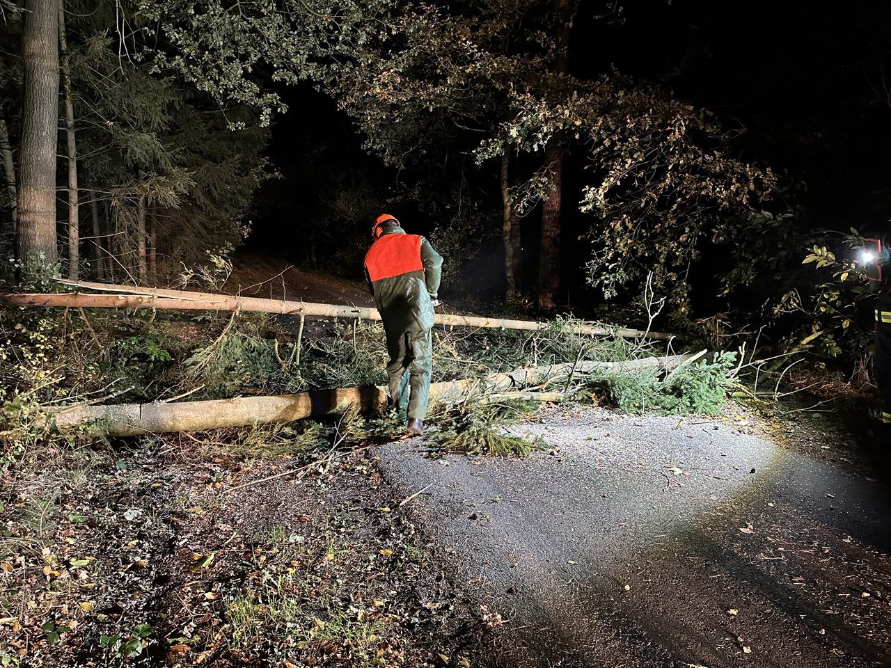 Wir sicherten den betroffenen Bereich ab, zerteilten den Baum mit der Motorsäge und räumten ihn anschließend von der Fahrbahn. (DS)