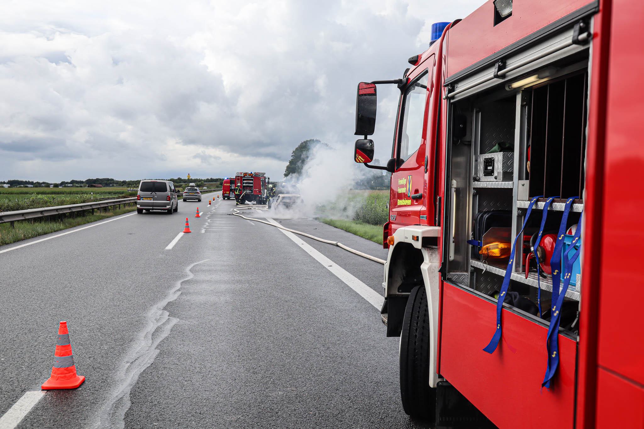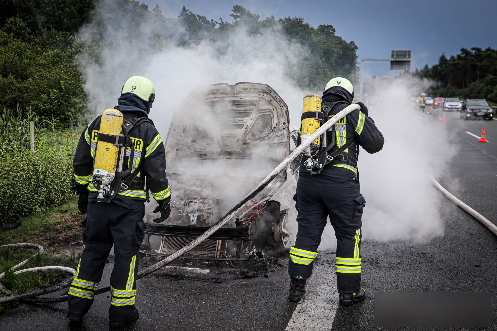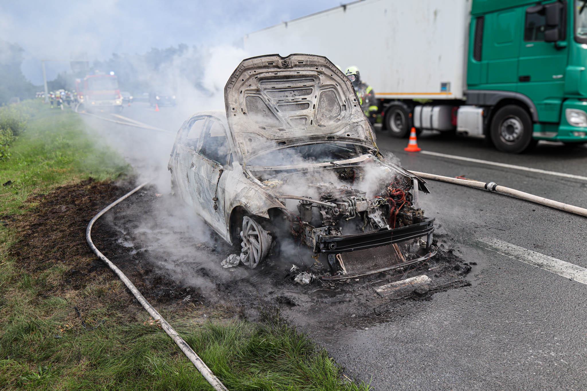 Beim Eintreffen der ersten Kräfte stand ein Pkw auf dem Standstreifen in Vollbrand. Personen befanden sich nicht mehr im Fahrzeug.