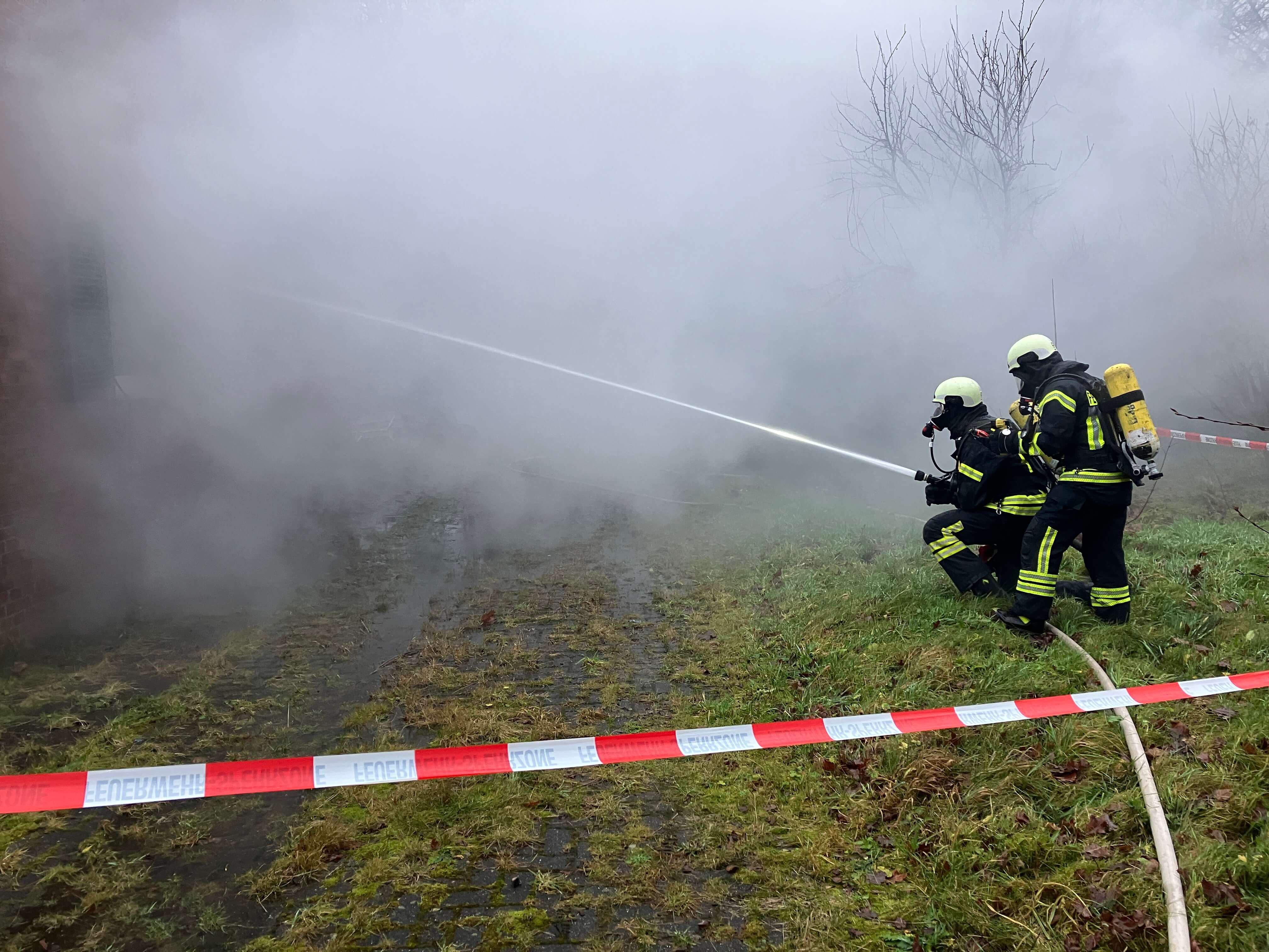 Beim Eintreffen der ersten Einsatzkräfte bestätigte sich das Lagebild: Ein Einfamilienhaus stand in Vollbrand. Der Dachstuhl war bereits in sich zusammengefallen, und nahezu alle Räume waren den Flammen zum Opfer gefallen. Durch weitere Informationen konnte bereits früh festgestellt werden, dass das Haus unbewohnt war.