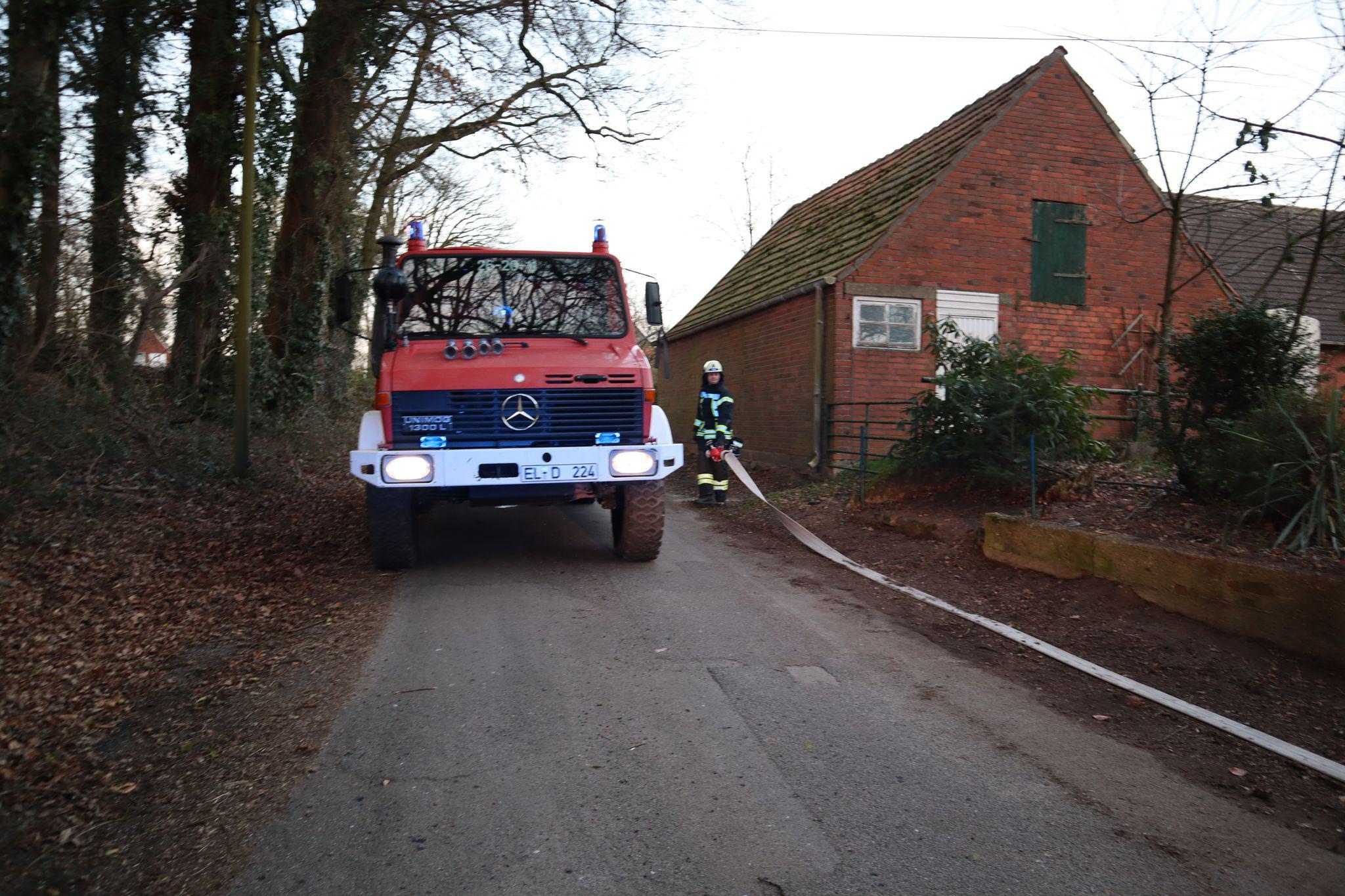 Beim Eintreffen an der Einsatzstelle stellte sich heraus, dass Unrat im Garten brannte. Nach dem Ablöschen des Brandes und einer abschließenden Kontrolle auf Glutnester konnte der Einsatz beendet und die Einsatzstelle der Polizei übergeben werden.