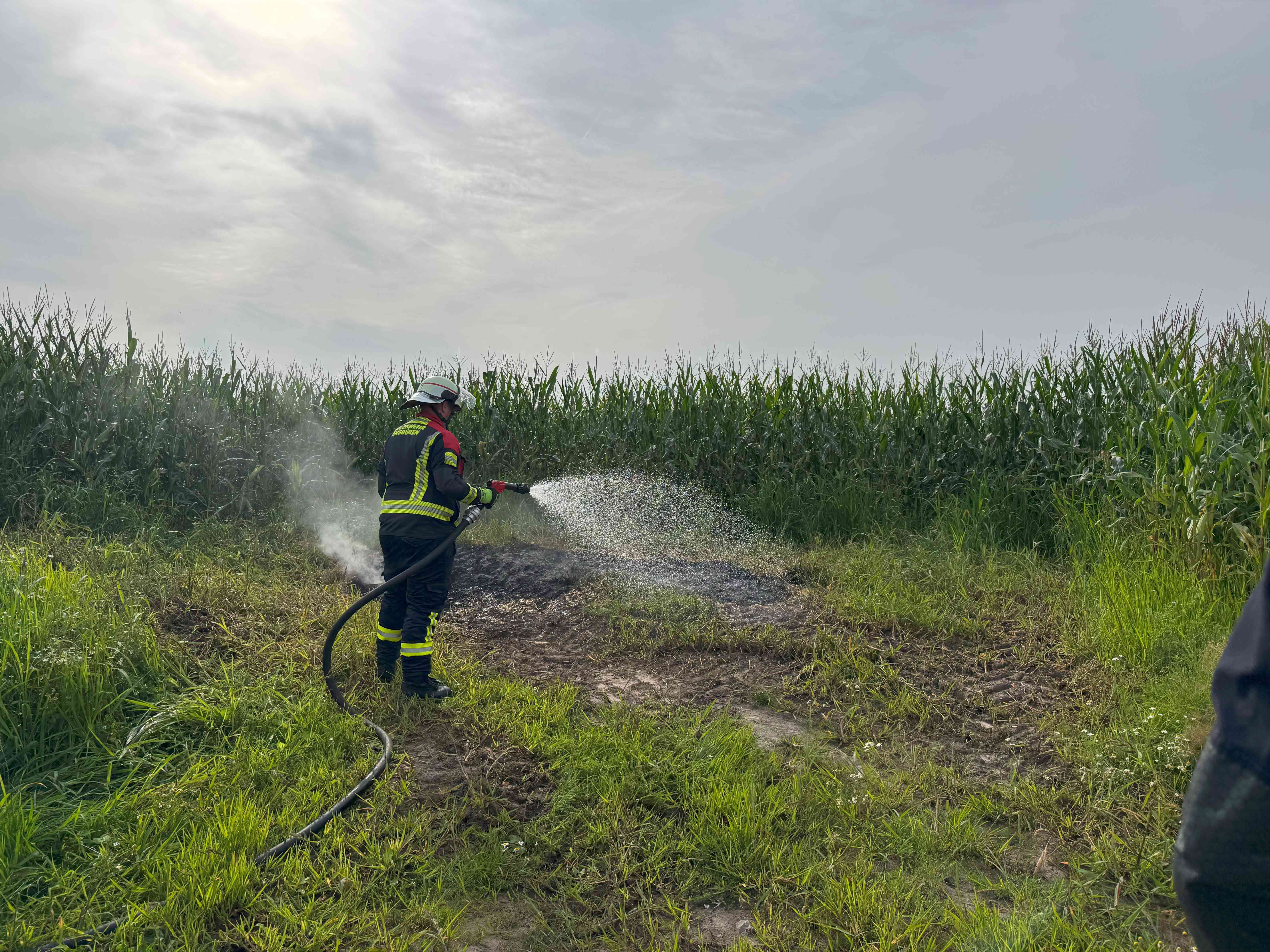 Am Samstag, den 09.08.2025, wurden wir um 09:21 Uhr zu einer Brandnachschau alarmiert. Gemeldet war ein bereits gelöschter Flächenbrand.
