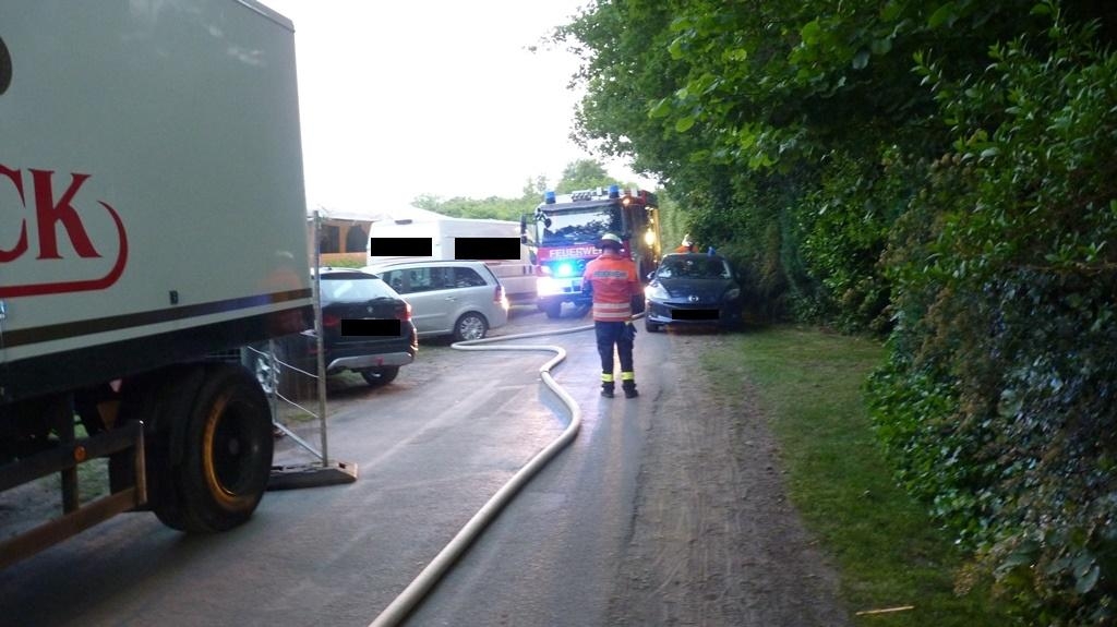 Zu einem PKW Brand wurden wir am frühen Sonntagmorgen in den Ortsteil Mehringen gerufen. Im Bereich des Schützenfestplatzes geriet aus noch unbekannten Gründen der Motor eines Autos in Brand. Angestellte des auf dem Schützenfest tätigen Kellnerteams bemerkten das Feuer und riefen die Feuerwehr. Mit einem Feuerlöscher unternahmen sie erste Löschmaßnahmen und konnten ein Ausdehnen des Feuers verhindern.