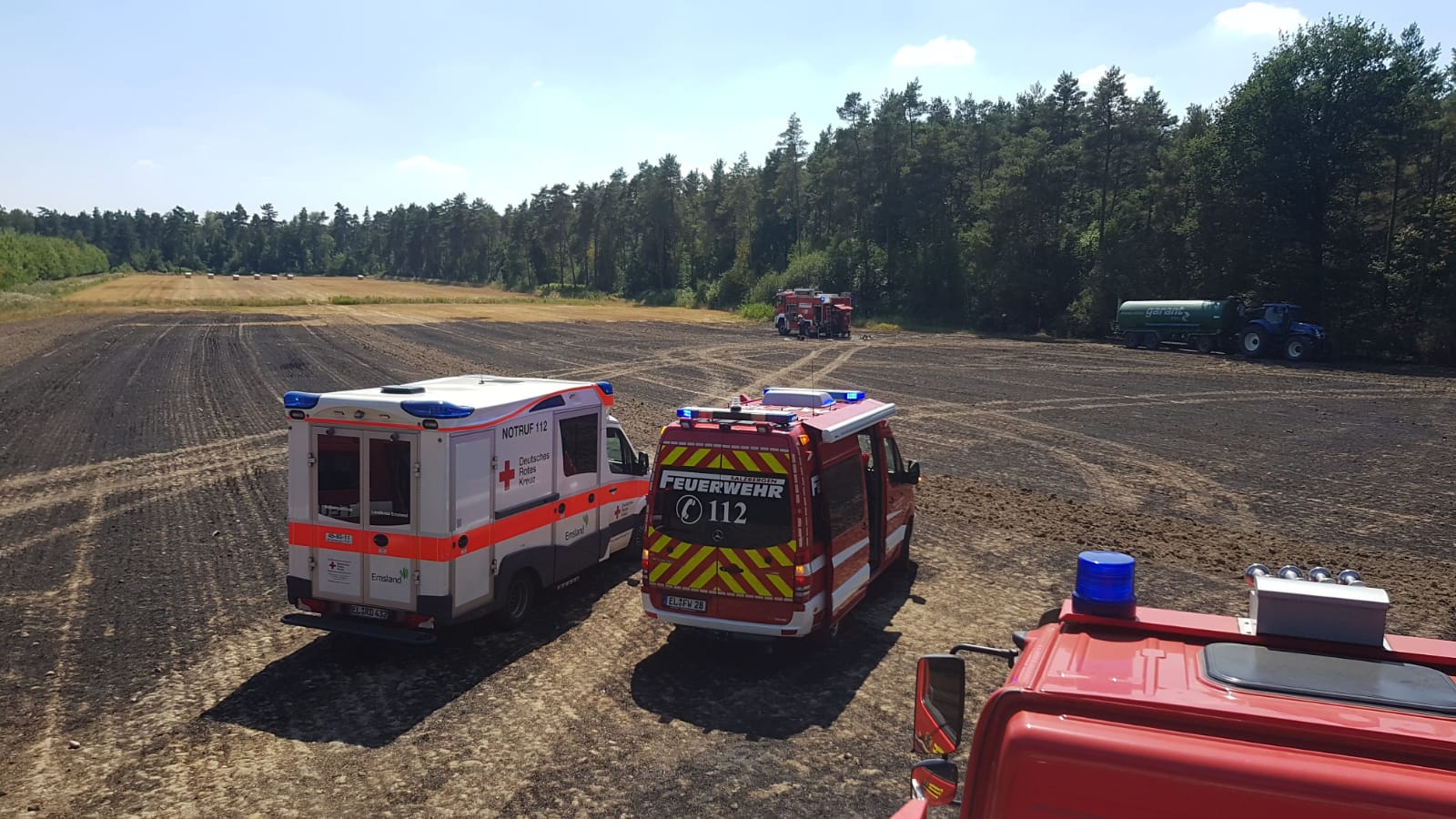 Am Dienstagnachmittag wurden unsere Tanklöschfahrzeuge von der Freiwilligen Feuerwehr Salzbergen angefordert. In der Nachbargemeinde waren etwa ein Hektar eines Feldes sowie rund 600m² eines angrenzenden Waldes in Brand geraten.