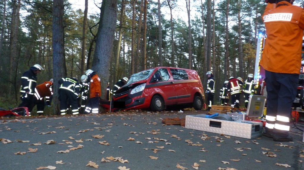 Vor Ort war ein Ford Transit, besetzt mit zwei Personen, von Emsbüren kommend in Richtung Gleesen, von der Gleesener Hauptstraße abgekommen und frontal gegen einen massiven Baum geprallt. Wegen des starken Aufpralls im Bereich der Beifahrerseite war der Beifahrer schwerst im Fahrzeug eingeklemmt. Der Fahrer des verunfallten PKW konnte das Fahrzeug unverletzt eigenständig verlassen.