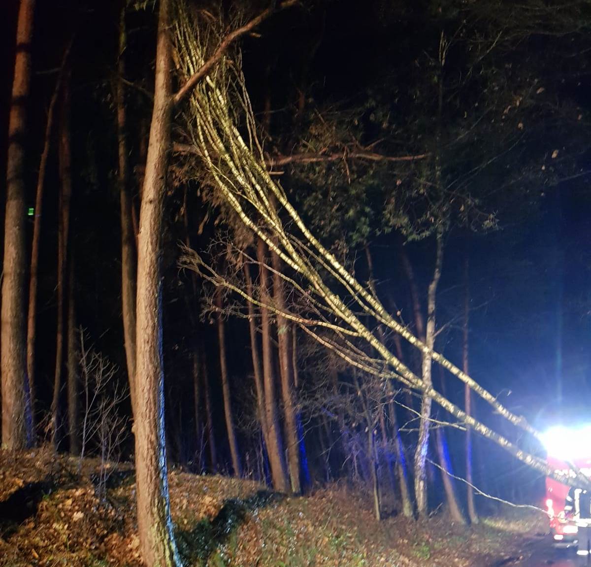 Am Freitag wurden wir zu einem Sturmeinsatz in den Ortsteil Gleesen gerufen, nachdem am Abend stärkere Windböen einsetzten. Entlang der Gemeindestraße "Am Grünen Revier" wurden zwei Bäume am Wegesrand durch den Sturm entwurzelt und kippten um. Durch Bäume an der anderen Straßenseite wurden sie vor einem vollständigen Umstürzen gehindert, drohten jedoch auf die Straße zu stürzen.